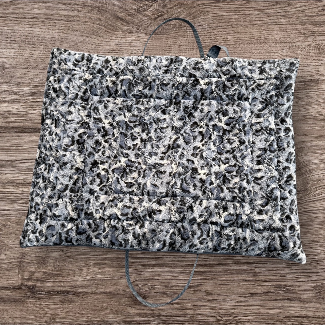 Place-to-go-Tasche aus weichem Fake Fur in Leooptik und Softshell in grau meliert.
